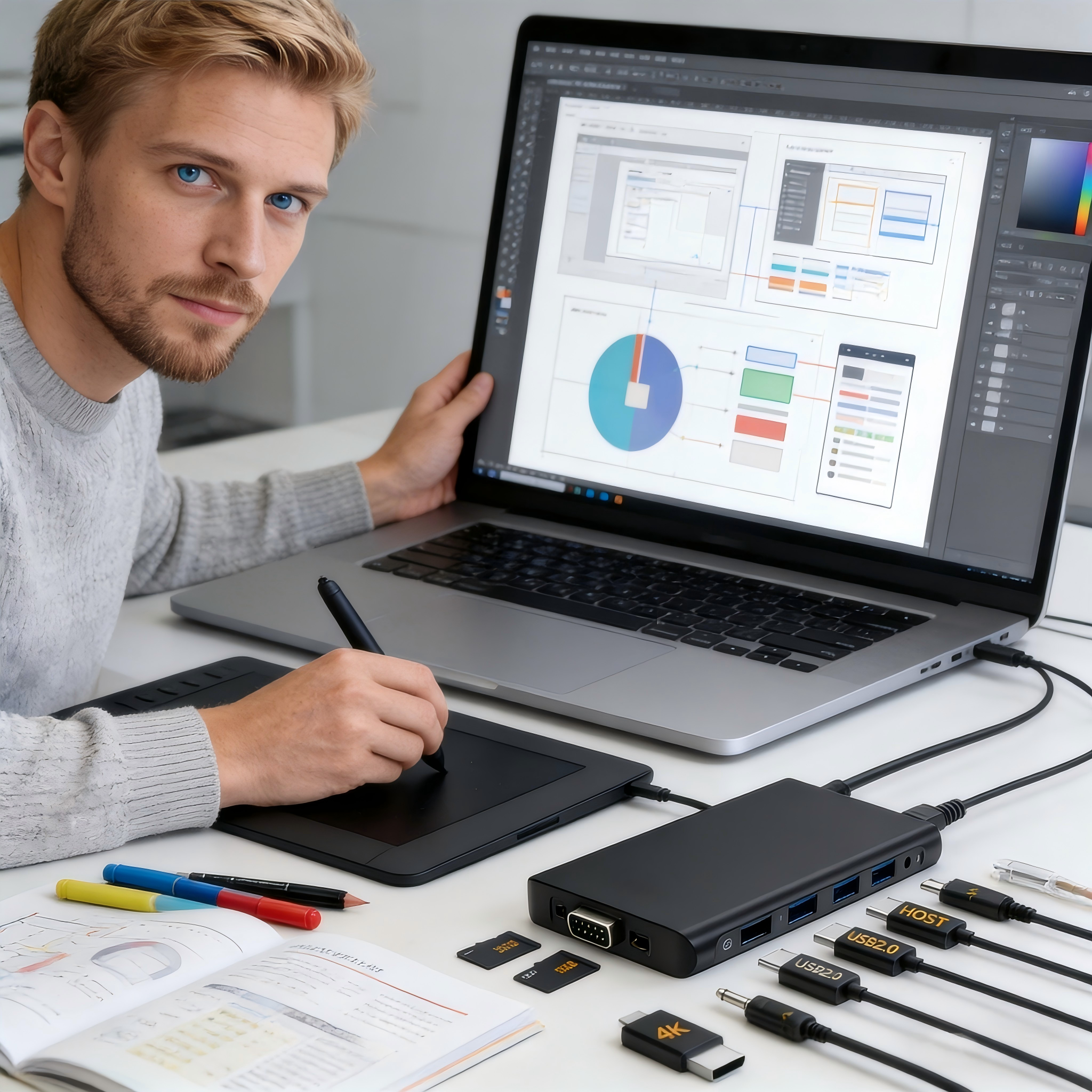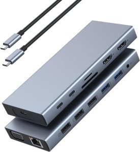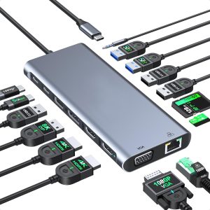 Advanced USB Type C docking station with 10+ ports. Switch between professional workflows—video editing, animation, live streaming, software development, competitive gaming, HD entertainment, and premium office tasks. One hub powers all your passions.