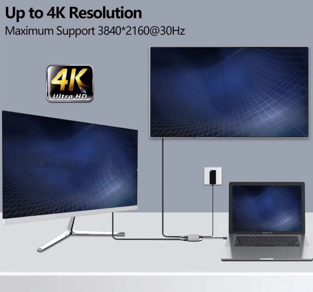 • 4K Video Adapter – Enjoy high-resolution video (up to 3840×2160@30Hz) with the HDTV port